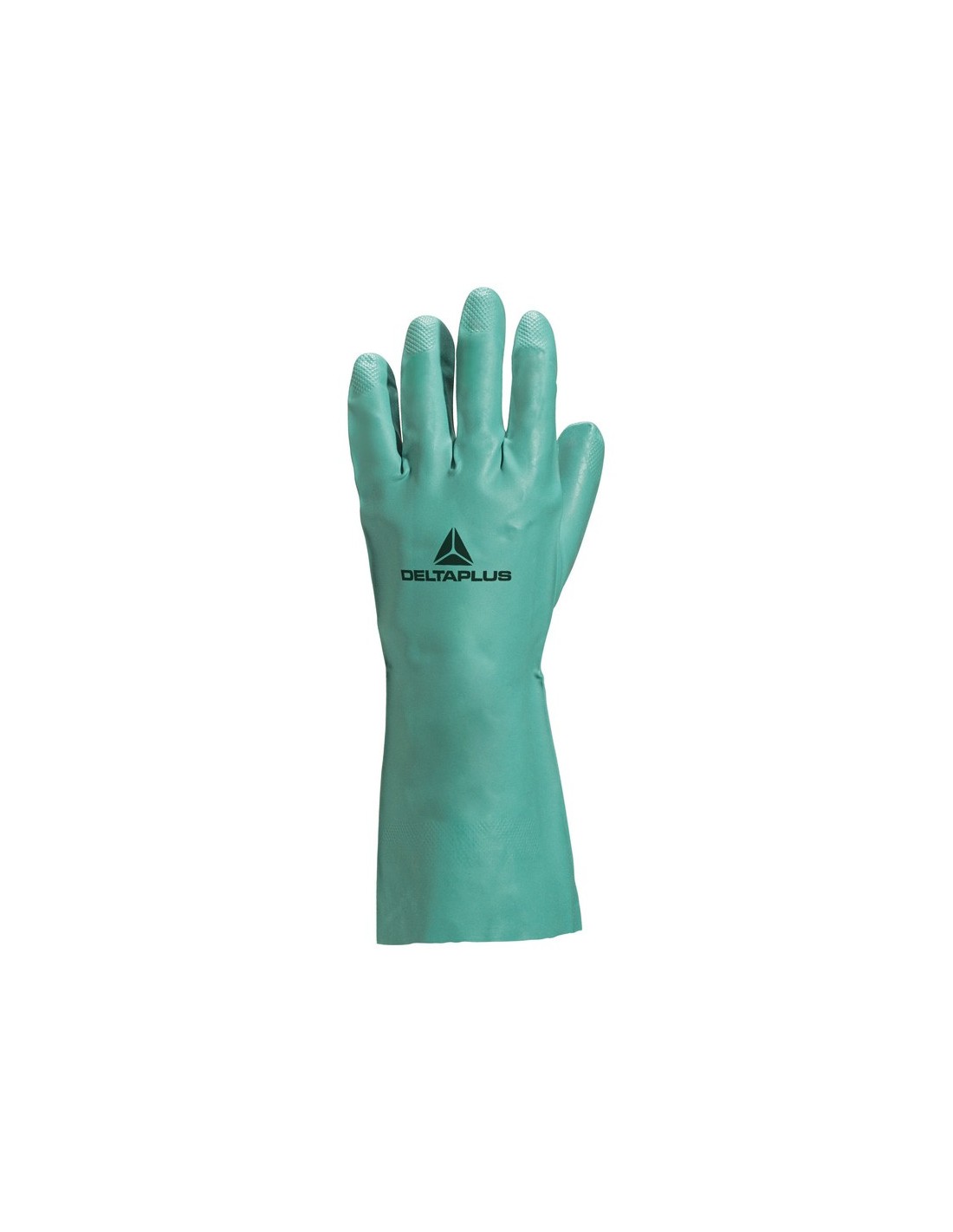 Nitrilo 100% flocado algodón, palma y dedos rugosos para mayor agarre, resistente químicos, EN374, EN388, 33 cm, usos industriales.
