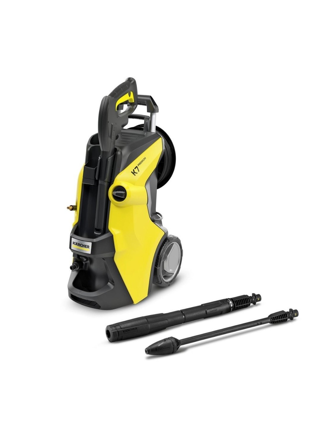 La hidrolimpiadora K 7 Premium Power dispone de un asa telescópica de aluminio de alta calidad que se extiende para facilitar el transporte y se retrae para guardarla, un enrollador de mangueras que permite almacenar la manguera de alta presión de forma protegida y compacta, y el sistema de detergentes Plug 'n' Clean de Kärcher, que permite cambiar el detergente de manera rápida, sencilla y cómoda con una sola operación.