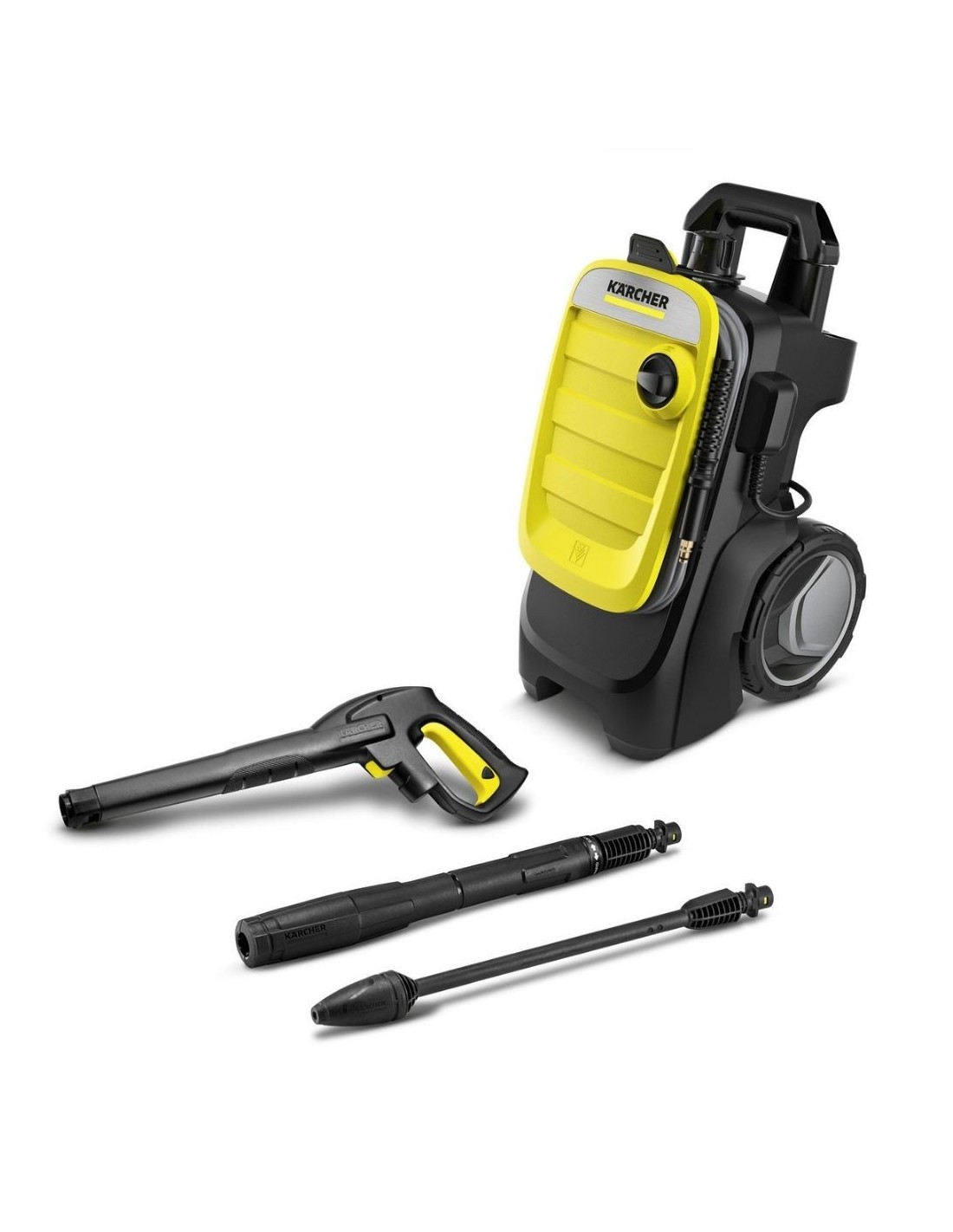 La limpiadora compacta para uso frecuente contra la suciedad resistente: limpiadora de alta presión K 7 Compact. Fácil de transportar y rápida de guardar. Rendimiento de superficie de 60 m²/h.