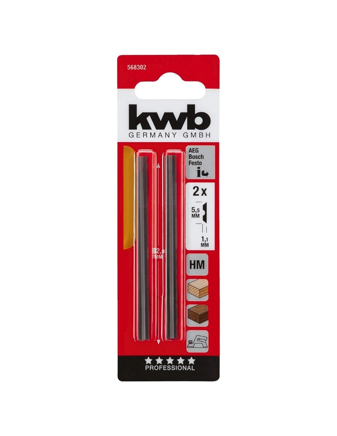 CUCHILLA CEPILLO KWB 49568302 - CARBURO TUNGSTENO HM 5,5MM ALUMINIO