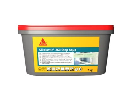 Sikalastic®-260 Stop Aqua se utiliza para la impermeabilización de duchas y baños, pudiendo aplicarse sobre soportes cementosos, hormigón, soleras secas, placas y bloques de yeso, yeso y piezas cerámicas como baldosas, siendo exclusivo para aplicaciones en interiores; entre sus ventajas destacan la ausencia de juntas, formar parte de un sistema con la cinta Sika® Seal Tape F, imprimaciones y adhesivos cerámicos, ser monocomponente a base de agua listo para usar, secado rápido, impermeabilidad a los líquidos, buena capacidad de puenteo de fisuras y aplicabilidad tanto con llana como con rodillo.