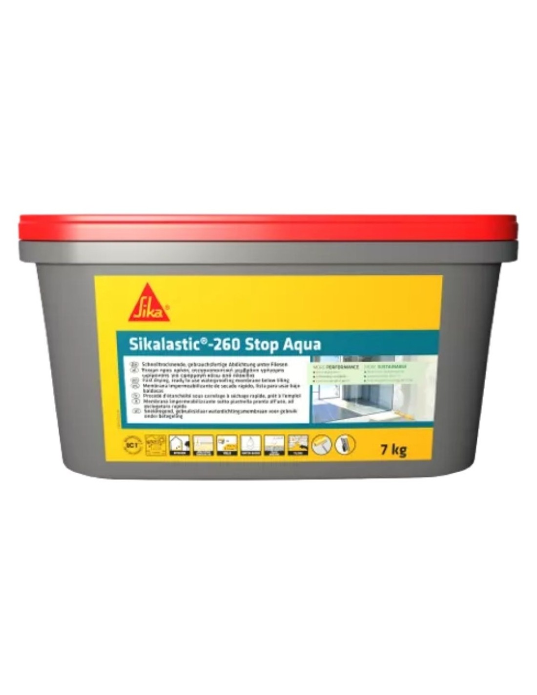 Sikalastic®-260 Stop Aqua es una membrana líquida de resina en base agua, monocomponente y lista para usar en cuartos húmedos. El producto es una membrana completamente impermeable y adherida al soporte, una vez seca pueden colocarse directamente las baldosas.