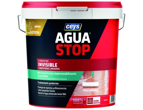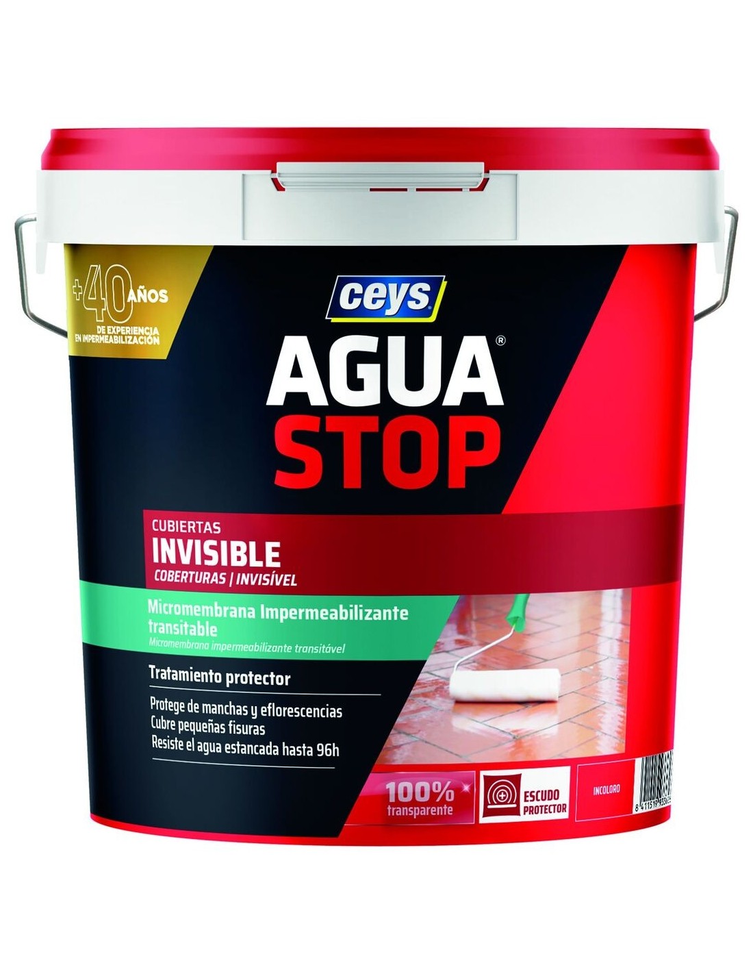 Aguastop Invisible de Ceys, sellador impermeabilizante de 16 L. Protege y sella superficies porosas, ideal para exteriores e interiores. Alta resistencia.