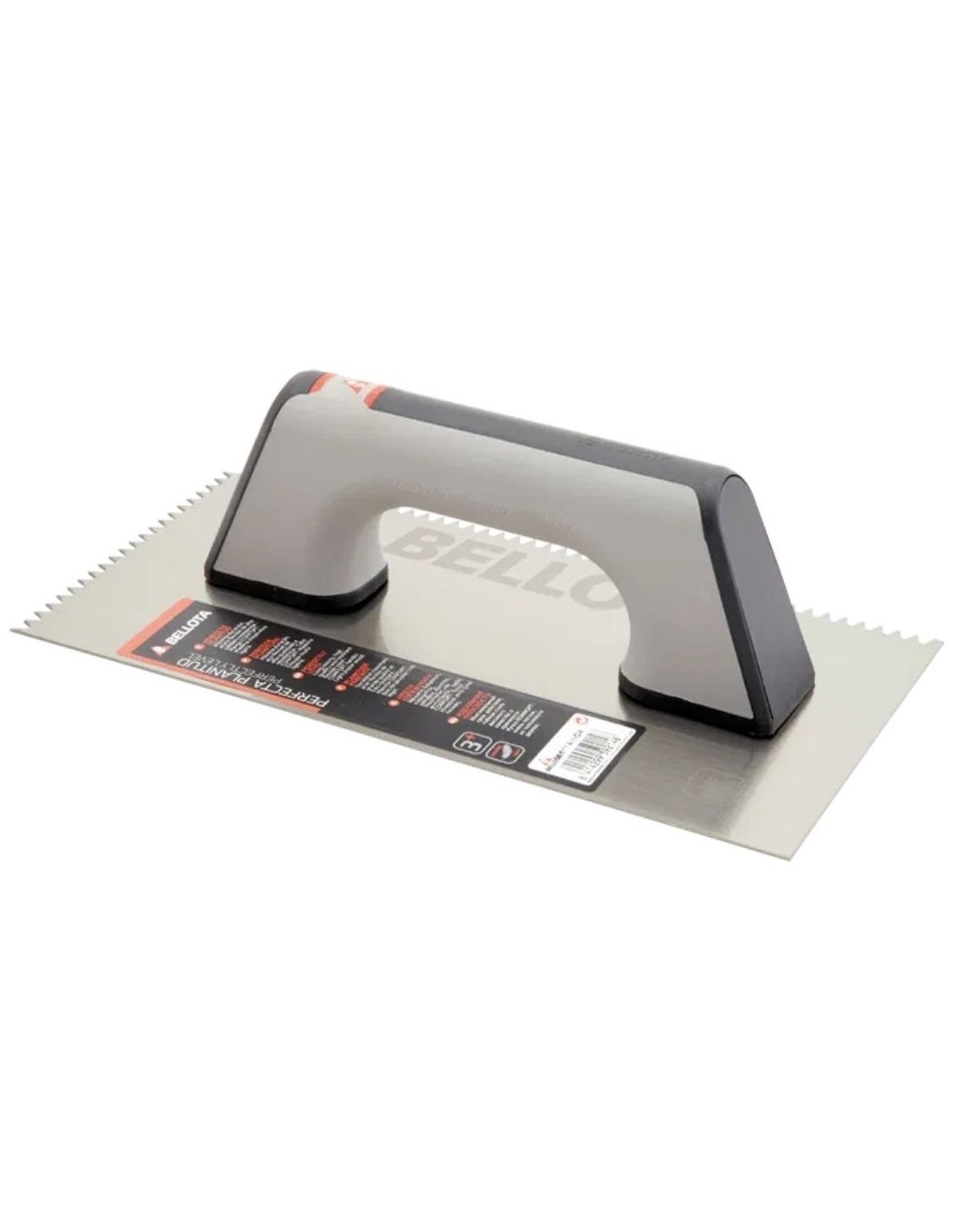 Te durará mucho tiempo sin desgaste, con hoja fabricada en acero tratado especial Bellota, resistente a la abrasión y barnizada, que ofrece un acabado perfecto y cuenta con extraordinaria flexibilidad y planitud, mientras que el mango ergonómico bimaterial, ligero y de tacto suave, permite extender el cemento cola con total comodidad.