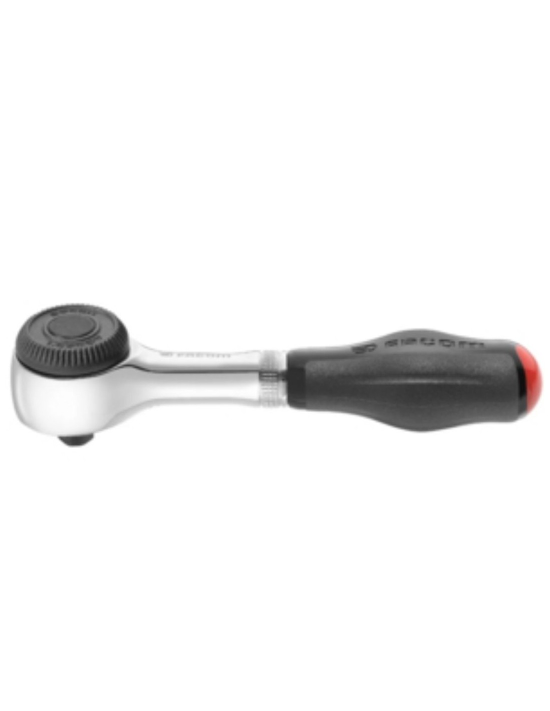 Mecanismo con mango rotativo que permite trabajar el doble de rápido incluso en zonas de acceso difícil; recuperación de 6° para el apriete final; bloqueo de seguridad del vaso que evita la pérdida de vasos en las máquinas; sistema "palma de mano" que permite apoyarse sobre la cabeza del trinquete durante el apriete o desapriete sin riesgo de invertir accidentalmente el sentido de rotación.