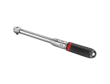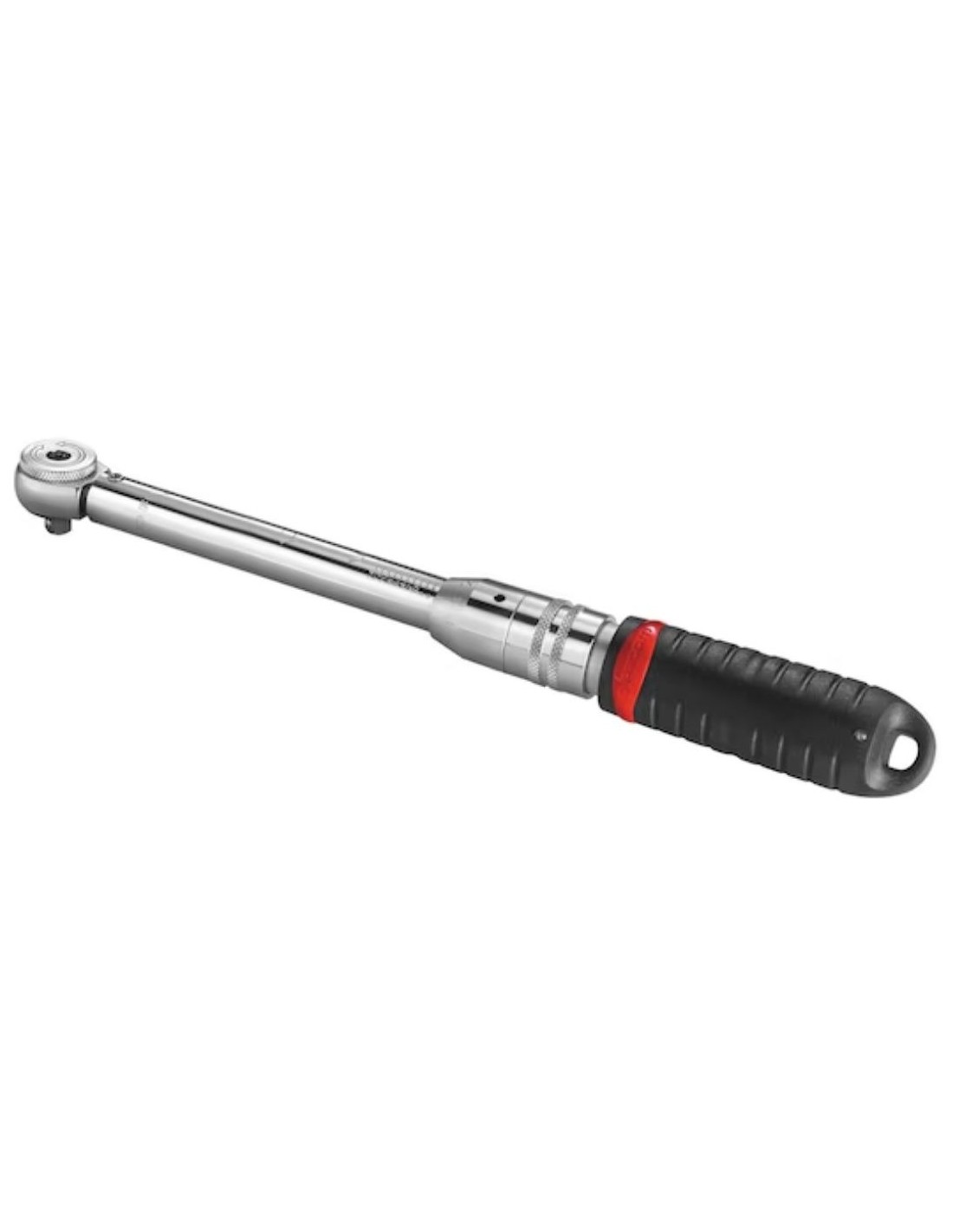 VERSATILIDAD: llaves de un solo sentido; SONIDO: clic audible y sensible al alcanzar el par de apriete; AJUSTE: reinicio automático; CERTIFICACIÓN: se suministra con certificado de calibración ISO 6789; ALMACENAMIENTO: se entrega en un tubo de protección de plástico.