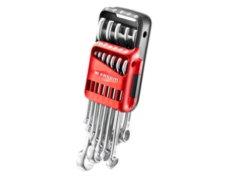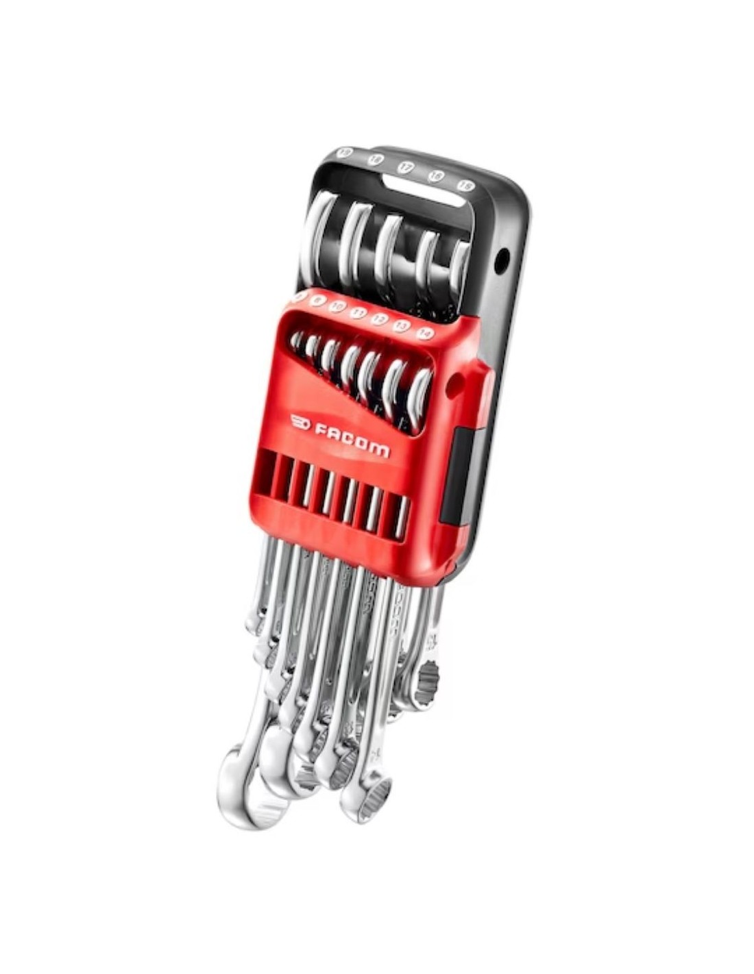 Perfil en forma de viga I que proporciona mayor comodidad gracias a su diseño redondeado; dimensiones disponibles en medidas métricas de 4 a 41 mm y en pulgadas de 1/4 a 1 1/2; set con medidas 7, 8, 10, 11, 12, 13, 14, 15, 16, 17, 18 y 19 mm, presentado en un portaherramientas de bolsillo.