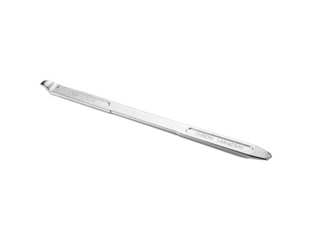 Desmontador de neumáticos con diseño curvo ideal para hacer palanca y separar la llanta de la goma en cambios de neumáticos, con forma especialmente diseñada para facilitar el desmontaje y bordes lisos que garantizan un manejo cómodo y seguro; fabricado en acero al Cromo-Vanadio, material resistente que prolonga la vida útil y previene la corrosión, además de contar con un acabado satinado mate que evita la adherencia de óxido, convirtiéndolo en una herramienta de alta calidad apta para trabajos profesionales y particulares, ideal para llevar siempre en el coche.
