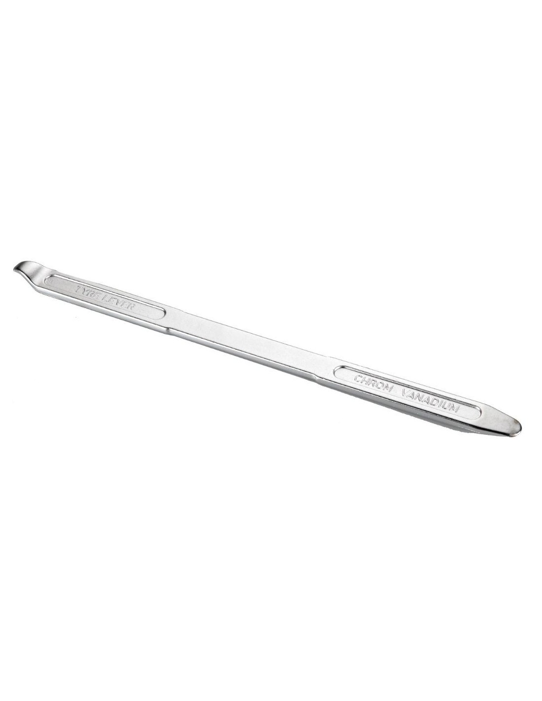 Desmontador de neumáticos con diseño curvo que facilita la separación de la llanta y la goma en cambios de neumáticos; su forma especialmente diseñada agiliza el desmontaje, mientras que el acabado satinado mate evita la corrosión; cuenta con bordes lisos para un manejo cómodo y seguro, y está fabricado en acero al Cromo-Vanadio, garantizando una vida útil muy larga.