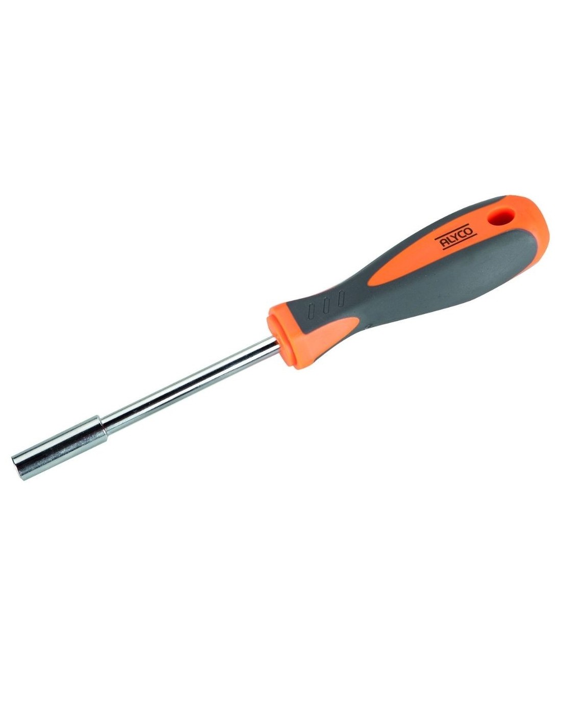 Mango atornillador portapuntas con varilla de acero y alojamiento hexagonal para puntas de 1/4", diseñado con mango ergonómico que facilita una mayor transmisión del esfuerzo; cuenta con un imán en el fondo del alojamiento para fijar las puntas de atornillar, y ofrece la función de destornillador con la posibilidad de cambiar la huella según las puntas disponibles.