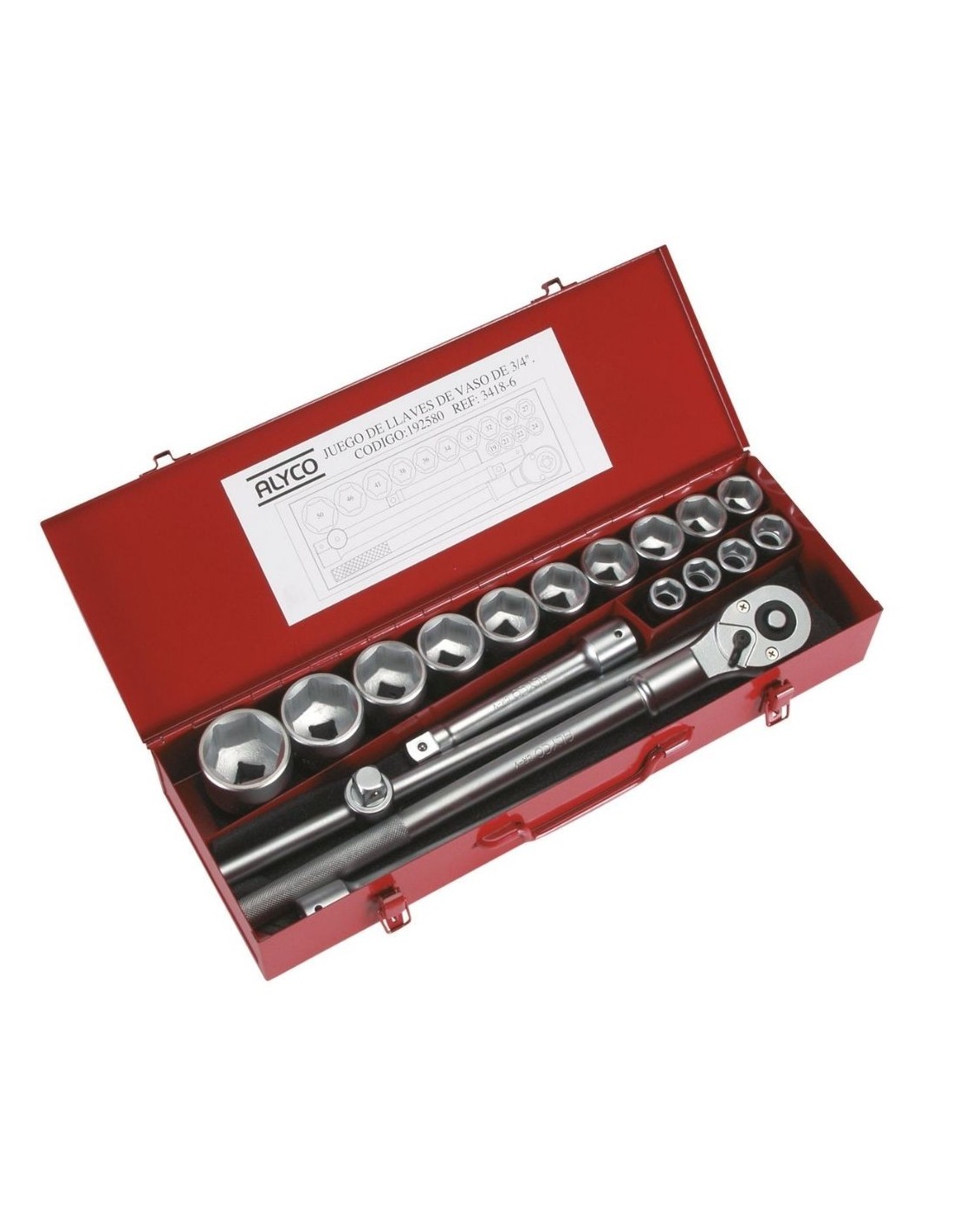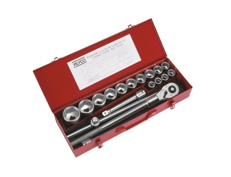Juego de llaves de vaso de 3/4" compuesto por 18 piezas fabricadas en acero Cr-Mo, con herramientas cromadas que ofrecen máxima protección contra la oxidación, prolongando significativamente la vida útil y asegurando una capacidad de apriete superior a las normas DIN. Incluye una carraca de 3/4" también en Cr-Mo con expulsor para facilitar el cambio de vasos. El set viene presentado en un maletín metálico resistente que permite almacenar y acceder rápidamente a cada herramienta, ideal para empresas de montajes, mantenimiento, servicio técnico, así como para trabajos en tractores, camiones y maquinaria pesada. Este juego es perfecto para trabajos mecánicos variados, automoción, instalaciones y mantenimiento de equipos industriales y maquinaria pesada.