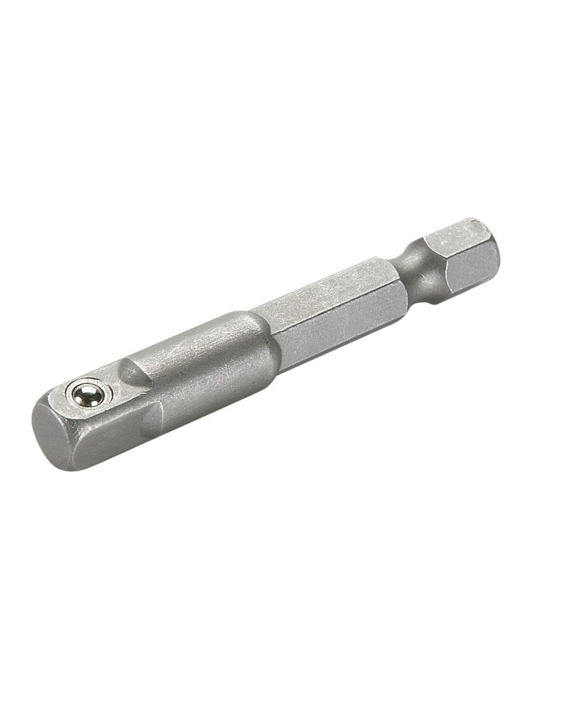 Adaptador para vasos fabricado en acero al cromo-vanadio, ideal para apretar o aflojar tuercas y tornillos de forma cómoda y eficaz con destornilladores neumáticos, eléctricos, taladros, etc. Permite un apriete rápido y una alta transmisión del esfuerzo gracias a su sistema de acoplamiento rápido con bola de seguridad que asegura conexiones firmes y seguras. Herramienta resistente y perfecta para tareas intensivas en sectores industriales.