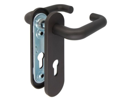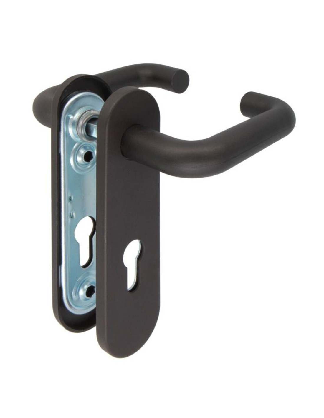 Manilla de puerta AMIG 3PB72, fabricada en acero y polipropileno negro. Ideal para usar en hogares y oficinas. Resistente y elegante.