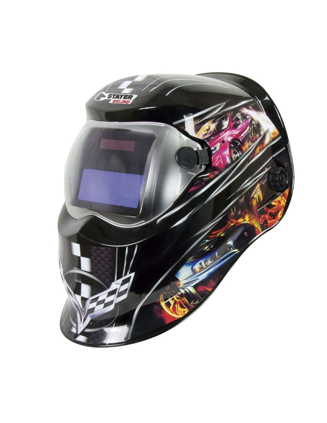 Máscara soldadura automática Carnival 1 Auto área visión 92x35mm. Filtro automático detecta chispazos, tiempo aclarado regulable 0.2-0.8s, peso 500gr.