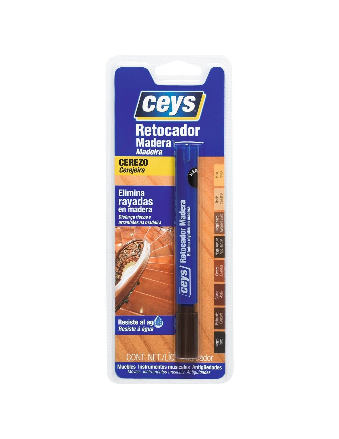 Retocador de madera CEYS en color cerezo, ideal para reparar y embellecer muebles. Formato de 30 ml, fácil aplicación y secado rápido.