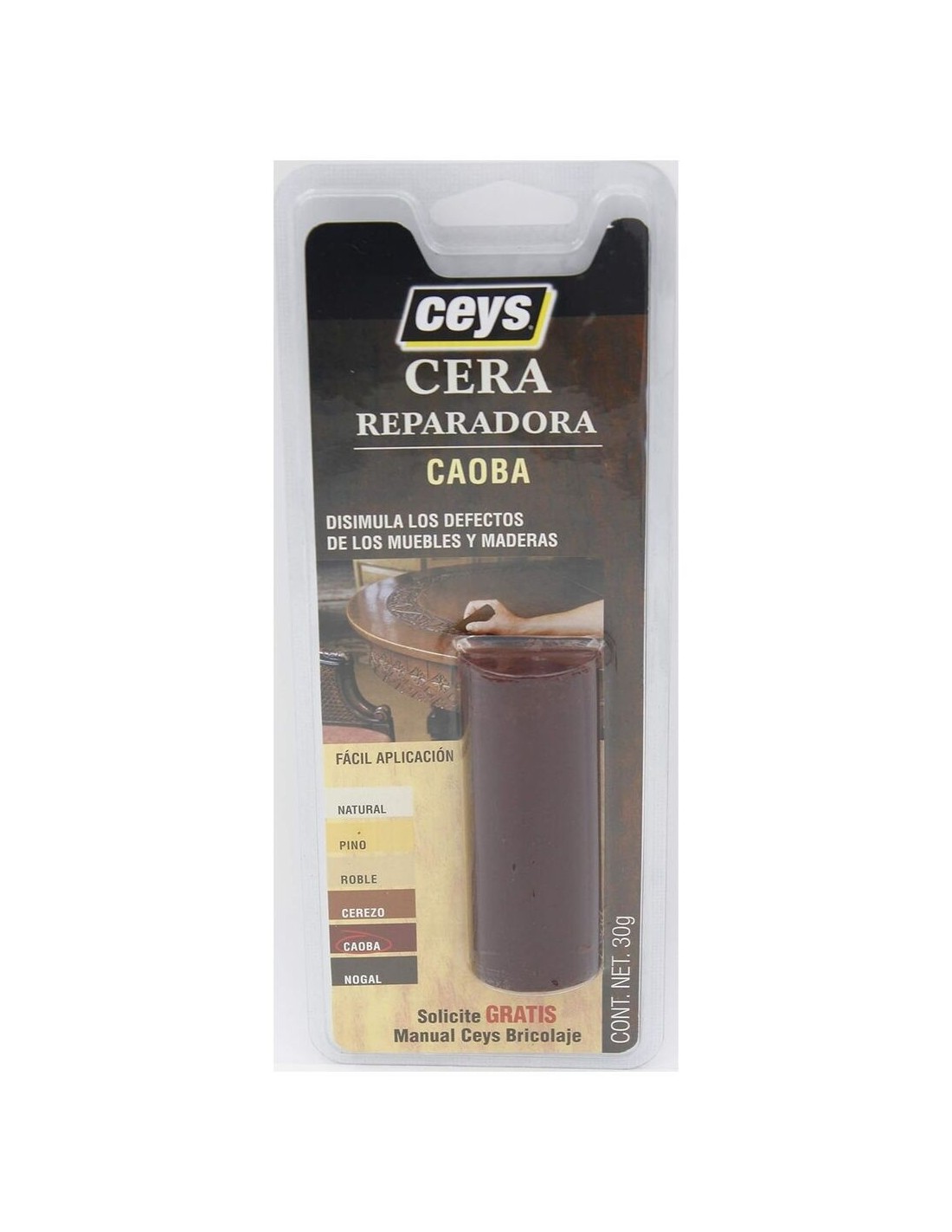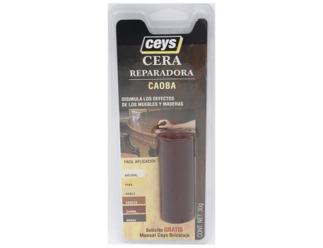 Cera reparadora CEYS en color caoba, ideal para restaurar y proteger superficies de madera. Fácil aplicación y resultados duraderos.