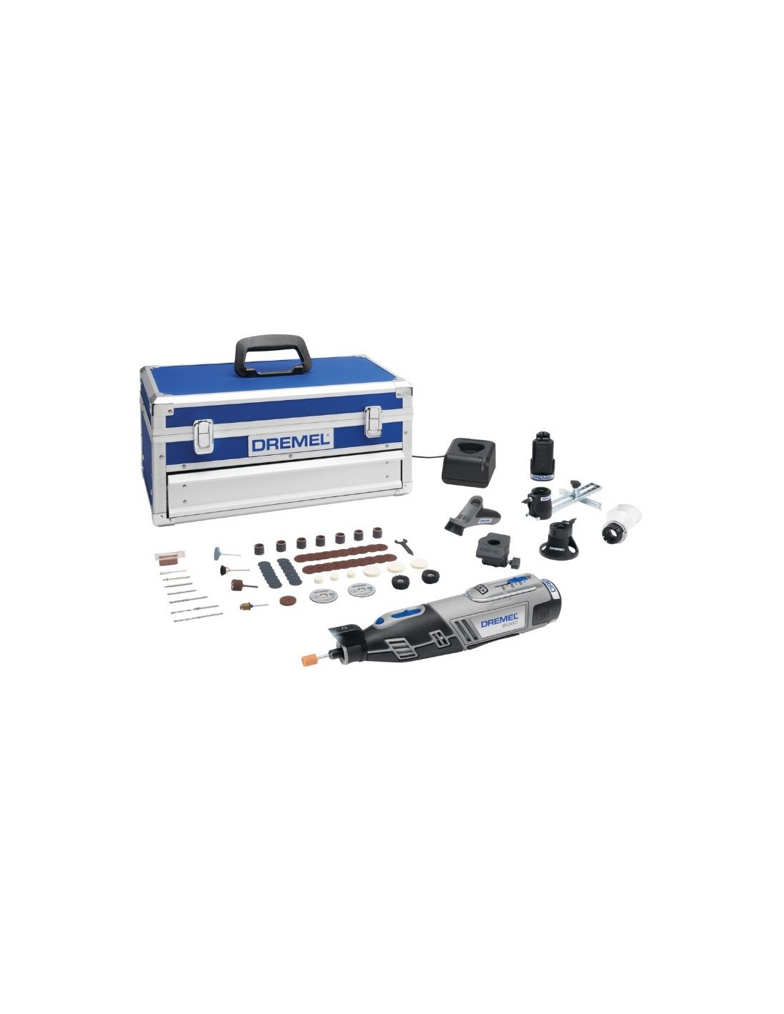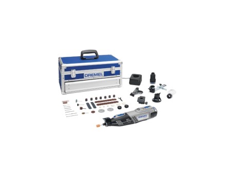 Multiherramienta con batería, potente y luminosa, diseñada para los aficionados al bricolaje más exigentes, que permite realizar proyectos de tallar, grabar, fresar, cortar, lijar, amolar, afilar, pulir y limpiar con una sola herramienta; el kit incluye 65 accesorios y 5 complementos, todo almacenable y transportable en un resistente maletín de aluminio, mientras que la luz LED incorporada facilita el trabajo en lugares oscuros y mejora la precisión en todos los proyectos.