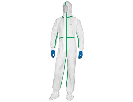 Buzo Protección Química Tipo 4 - Equipo profesional impermeable diseñado para trabajadores expuestos pulverizaciones químicas, agentes biológicos y partículas en entornos alto riesgo.