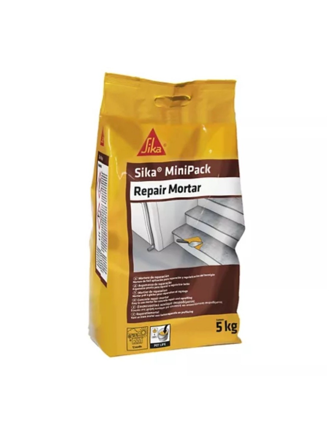Sika® MiniPack Repair Mortar es un mortero de reparación con excelente trabajabilidad y tixotropía, adecuado para reparaciones puntuales en hormigón, el reperfilado de superficies y la regeneración de áreas dañadas tanto en superficies verticales como horizontales; entre sus ventajas destacan su excelente trabajabilidad, la buena adherencia a la mayoría de materiales de construcción como hormigón, piedra y ladrillo, su estabilidad dimensional, un coeficiente de dilatación térmica y un módulo de elasticidad similares a los del hormigón, sus elevadas resistencias mecánicas, la prolongada vida de mezcla, la posibilidad de conseguir un buen acabado y la facilidad de aplicación incluso en techos.