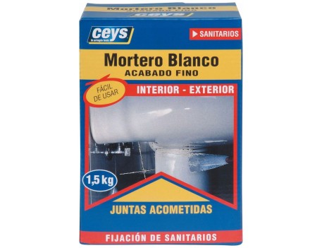 Mortero blanco CEYS de 1.5 kg ideal para trabajos de construcción y reparación. Alta resistencia y fácil aplicación en superficies diversas.