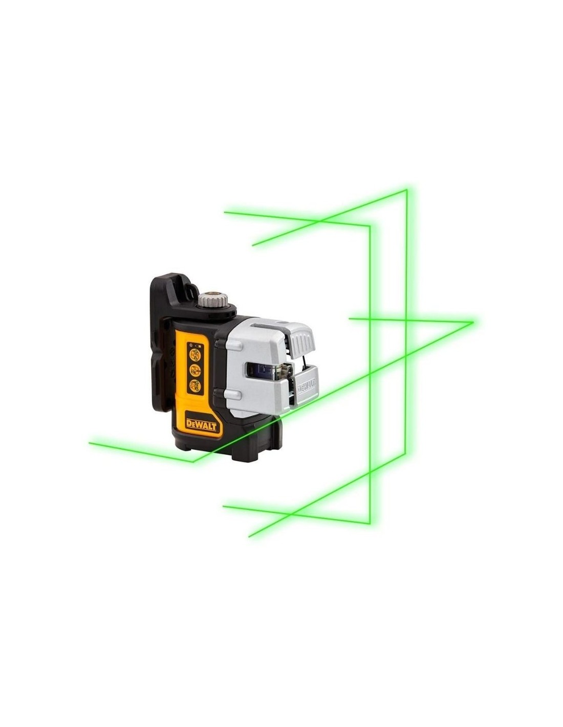 Nivel láser multi-línea autonivelante con alcance de hasta 20 metros (50 metros con detector), precisión de ±3 mm a 10 metros y autonivelación en superficies de hasta 4°, equipado con carcasa resistente al agua, base magnética pivotante con rosca de ¼”, ajuste fino de la línea vertical y lateral, interfaz de tres botones con indicación de batería baja para mayor facilidad de uso, y compatibilidad con el detector de línea DE0892G.