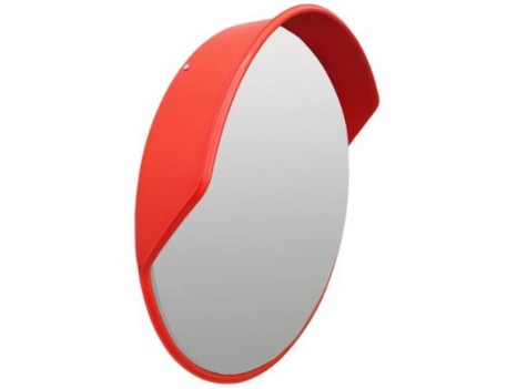 Es un espejo con lente fabricada en policarbonato y parte trasera de polipropileno en color naranja con visera superior del mismo tono, ofrece un ángulo de visión de 130° ajustable según las necesidades mediante los accesorios incluidos (tornillos y anclaje para tubo de Ø50 a 60 mm), permite una distancia máxima del observador al espejo de 11 m, cuenta con un anclaje rápido y fácil, está elaborado en material reciclable y es apto tanto para uso en exteriores como en interiores.