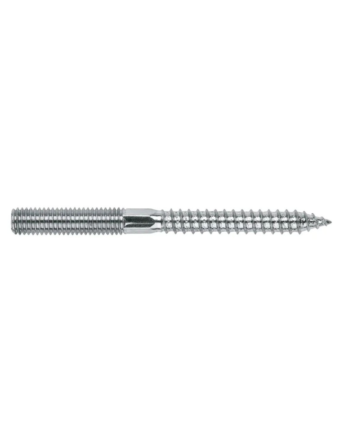 Tornillo de doble rosca con huella TX. Cuenta con rosca métrica en una de sus mitades. Permite fijar elementos como abrazaderas u otros accesorios de montaje a techos y otras superficies. Según el material base, se puede fijar de forma directa o mediante el uso de tacos. Está fabricado en acero con recubrimiento zincado.