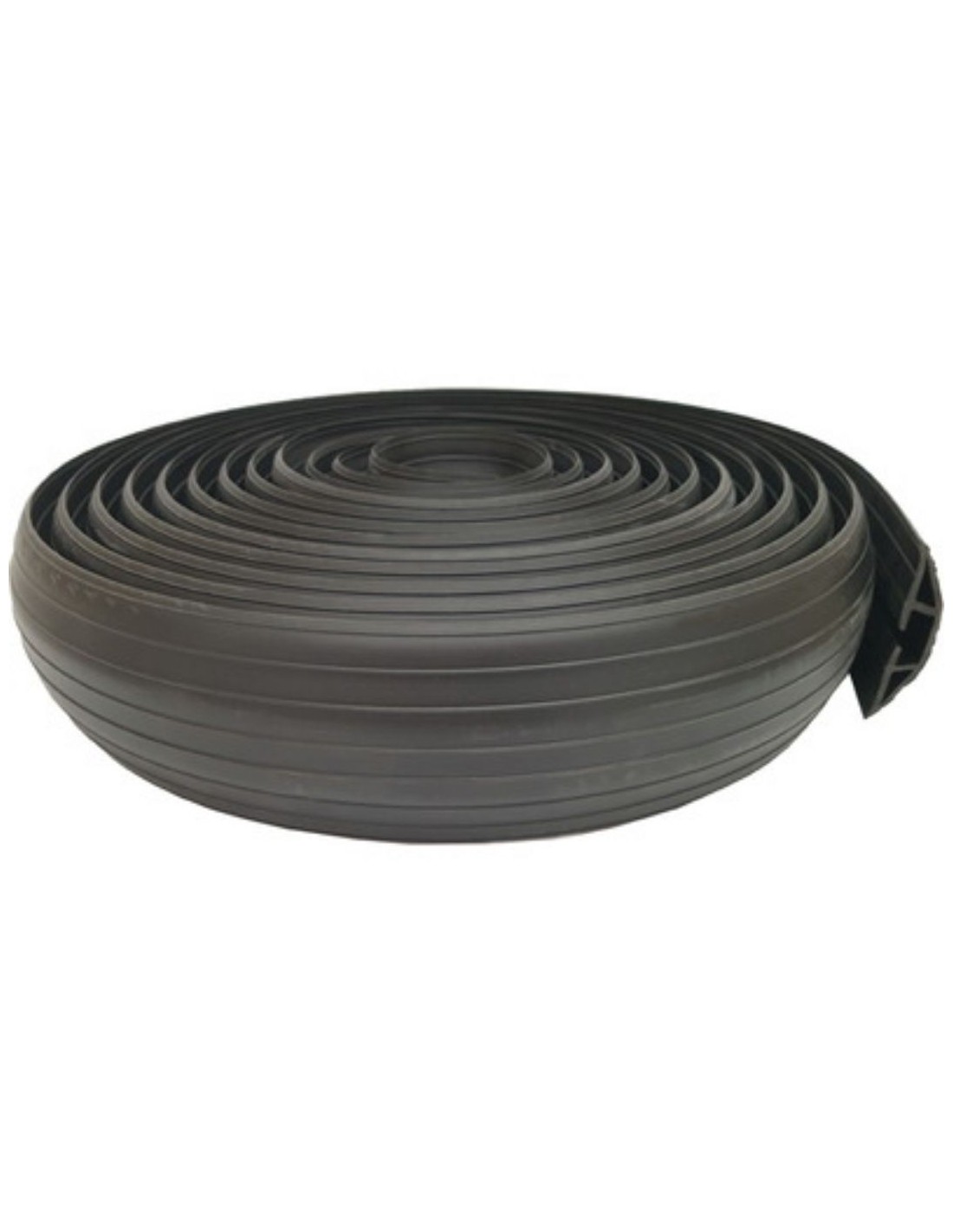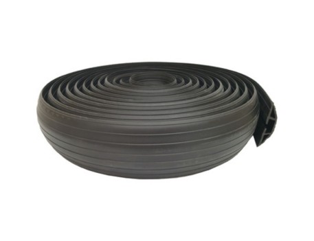 Protector de cables fabricado en PVC negro flexible, con ranuras precortadas en la parte inferior de la cubierta para insertar cables, construcción de goma con un solo canal utilizable de 19x9,5 mm, duradero y ligero, que reduce los riesgos de tropiezo; se fija al suelo con cualquier fijador adecuado según la superficie, se presenta en cajas de 9000 mm que pueden cortarse para adaptarse al espacio de instalación, con medidas de 9000x76x16 mm, peso de 7 kg, material PVC, color negro, presentación individual en caja de 450x440x80 mm y paso de cables de 19x9,5 mm.