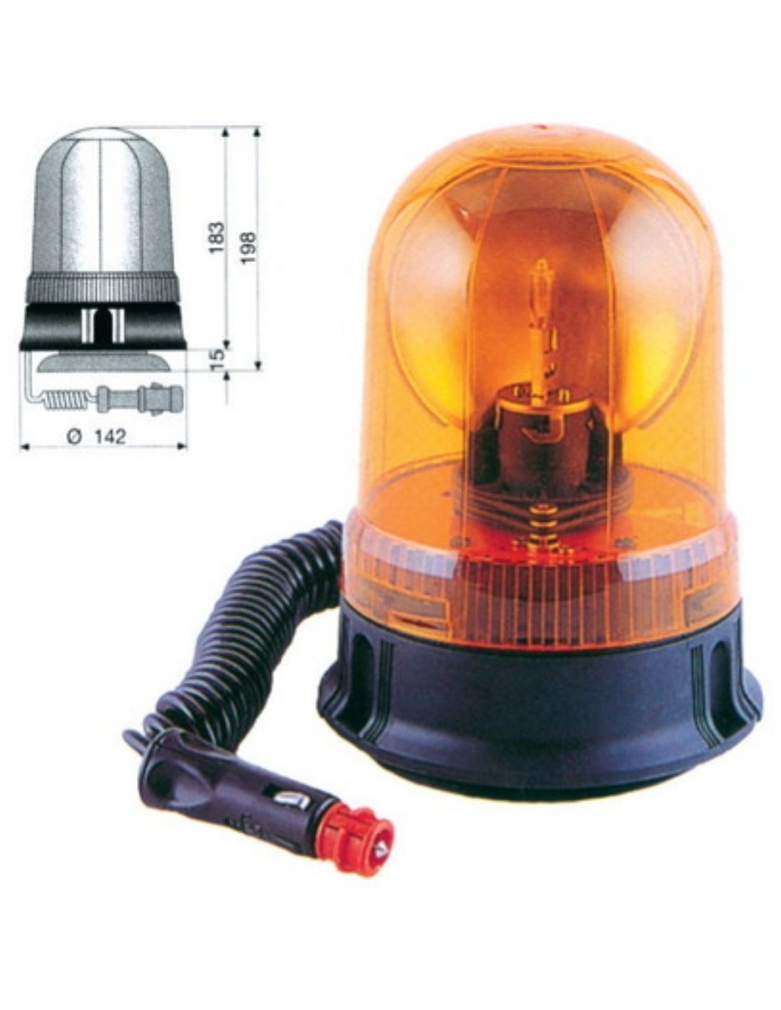 Rotativo halógeno ámbar de 12v o 24v, con base magnética o fijación estándar y conexión a mechero.