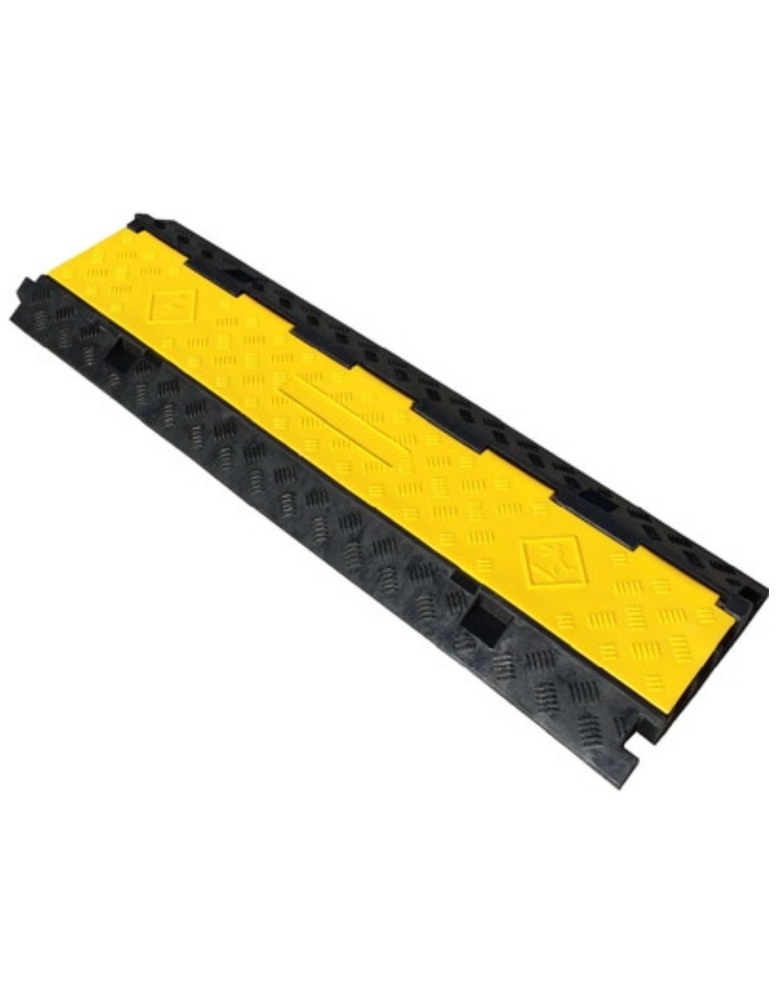 Protector de cables de caucho, ideal para todos aquellos lugares en los que sea necesario instalar cableado eléctrico provisionalmente protegiendo así el cableado y evitando posibles daños a personas y vehículos.