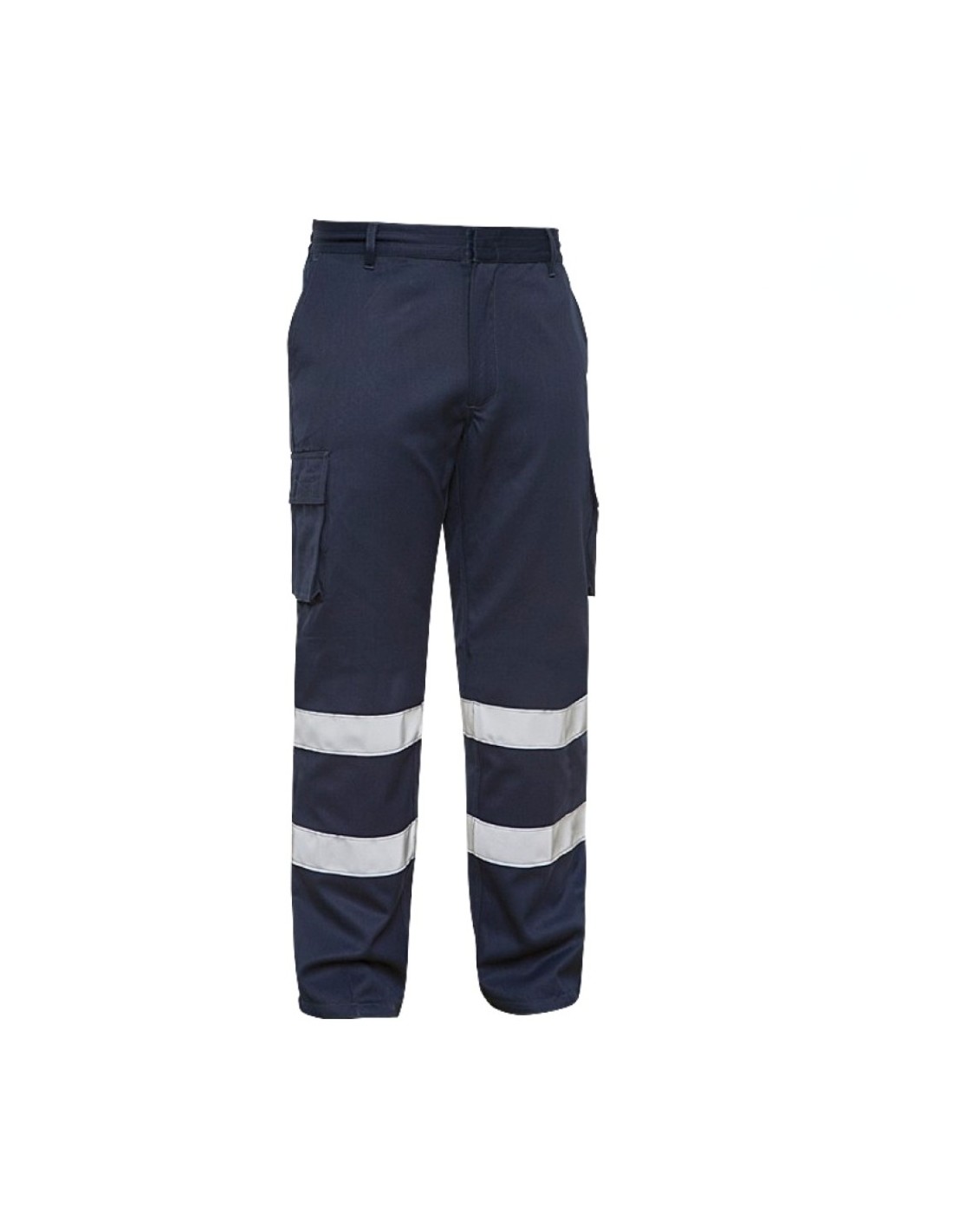 Pantalón Alta Visibilidad SARECO BANDAS EPI Categoría III - Combina protección térmica avanzada con visibilidad realzada para soldadores que trabajan en entornos donde necesitan ser vistos. Su tejido 99% algodón y 1% carbono conductor de 300gr/m² te protege del arco eléctrico con ATPV certificado de 14 cal/cm².