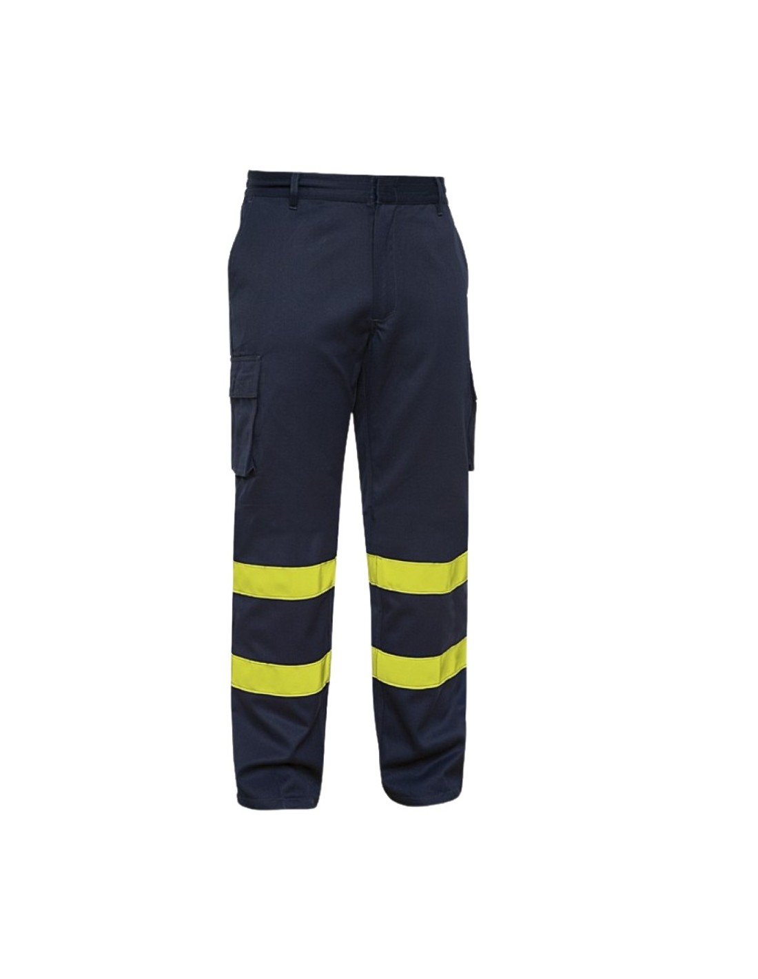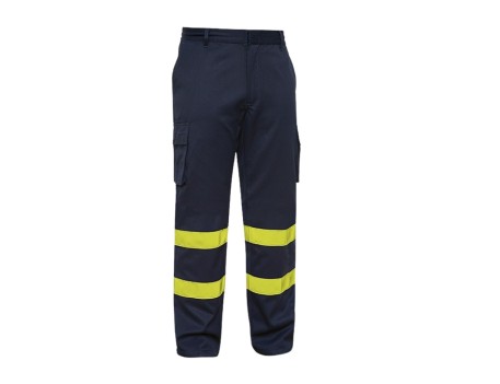 Las bandas alta visibilidad amarillas termo-soldadas en las perneras te hacen detectable sin comprometer la protección térmica. El algodón te da comodidad natural mientras el carbono conductor elimina electricidad estática peligrosa.