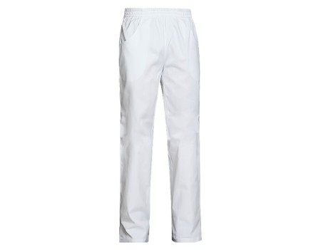 Pantalón sanitario 65% poliéster 35% algodón. Cinturilla elástica, dos bolsillos delanteros. OEKO-TEX. SP-3SG. Blanco, azul, gris, verde.