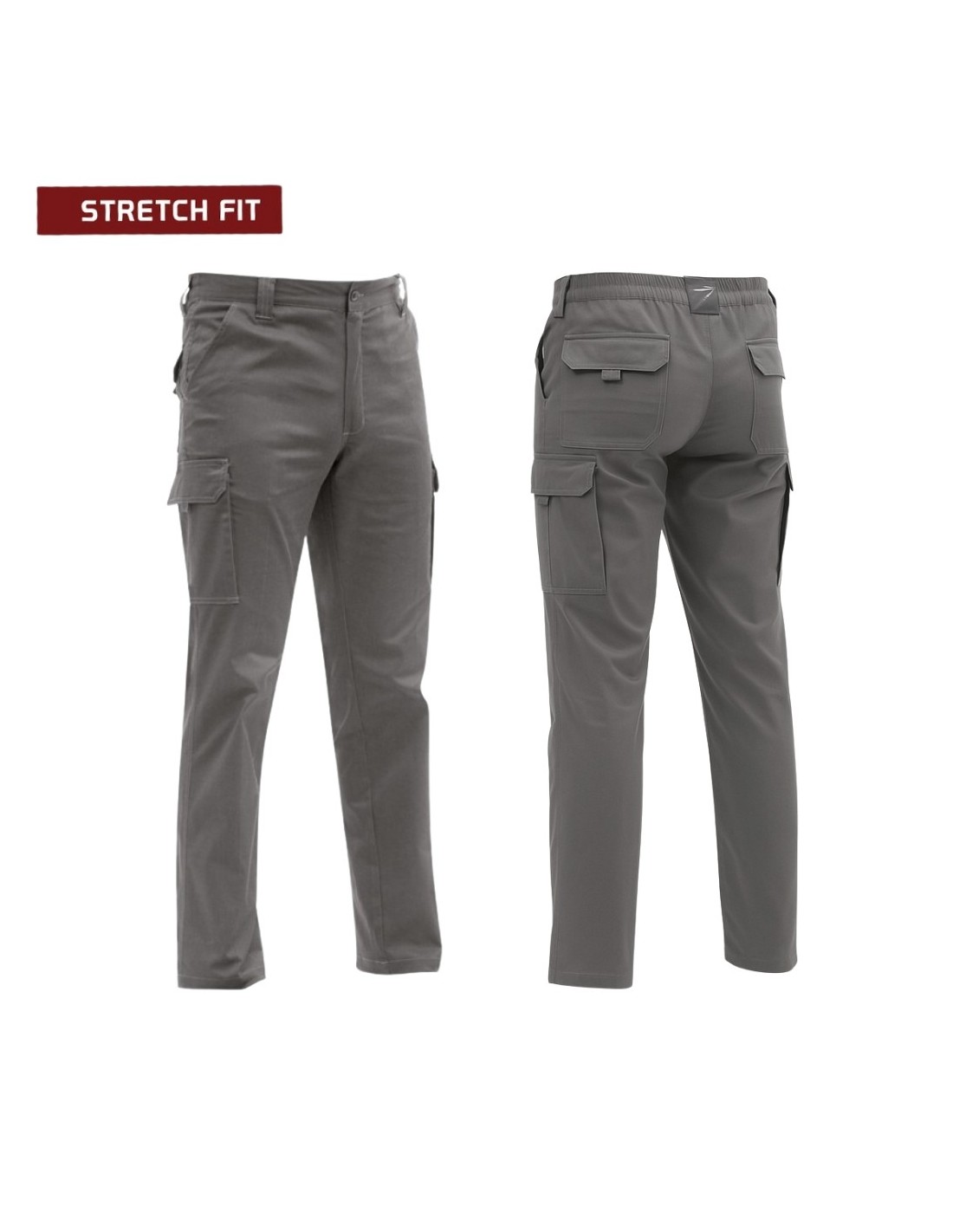 Pantalón STRETCH Profesional Tecnología Spandex OEKO-TEX GRIS - Máxima libertad movimiento y confort ergonómico trabajos activos. Composición 65% poliéster 33% algodón 2% spandex 240g/m², tejido elástico adaptación perfecta cuerpo sin restricciones, hilo contraste acabados profesionales distintivos.