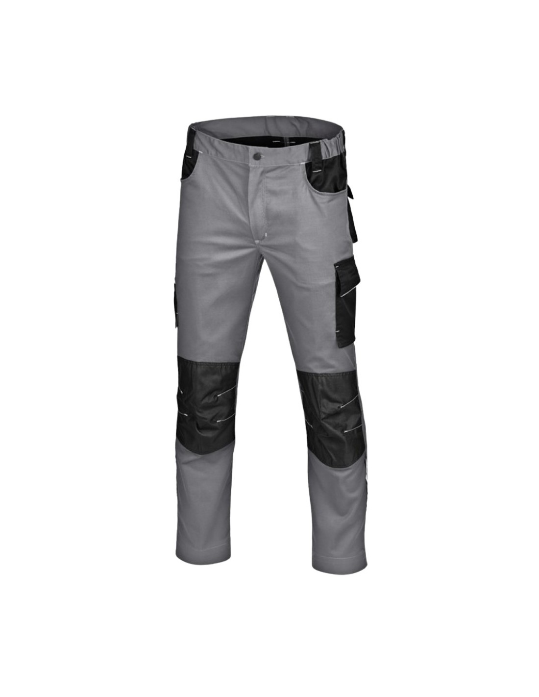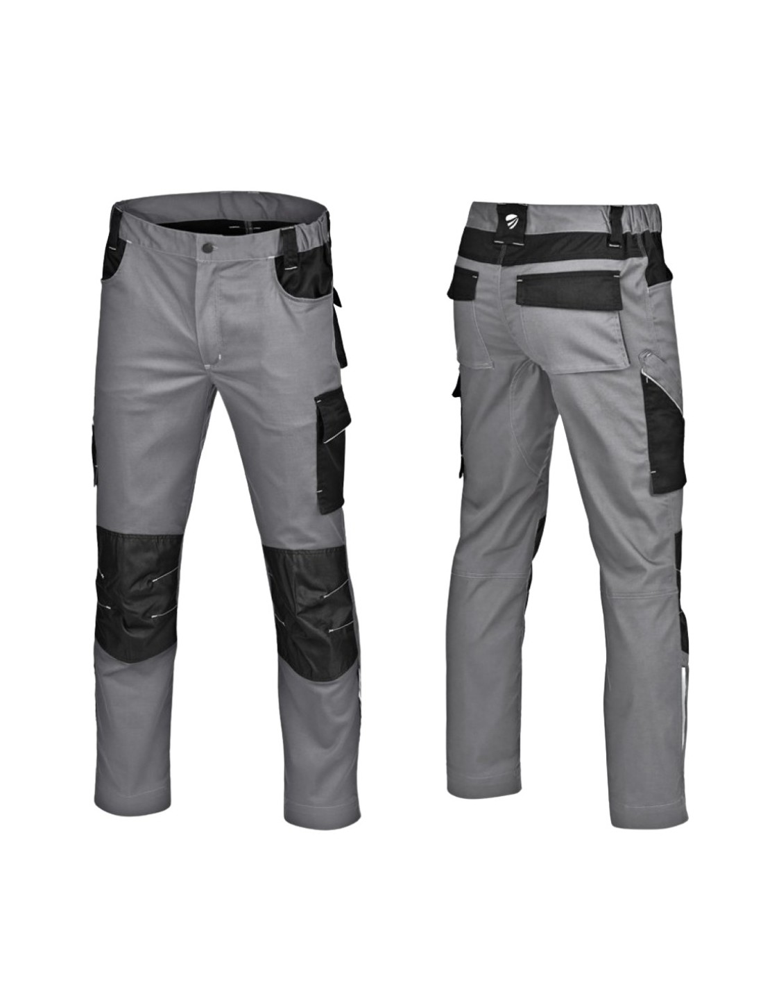 Pantalón STRETCH PRO spandex con refuerzos Oxford 300D gris. Rodilleras preformadas, bolsillos semiflotantes reflectantes. OEKO-TEX. XS-4XL bicolor.
