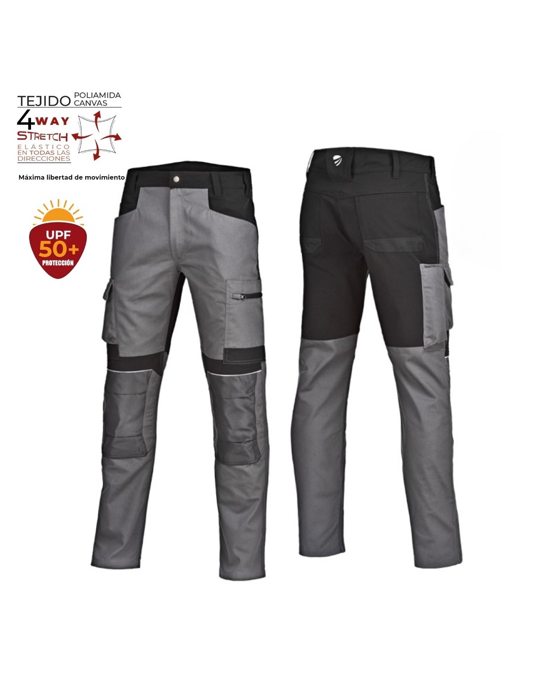 Pantalón PROWORK 4 WAY STRETCH Poliamida OEKO-TEX GRIS - Se estira en las cuatro direcciones para que te muevas como necesites. Su tejido negro 95% poliamida y 5% elastano junto con el PROWORK de 260g te da la flexibilidad y resistencia que buscas en trabajos técnicos exigentes.