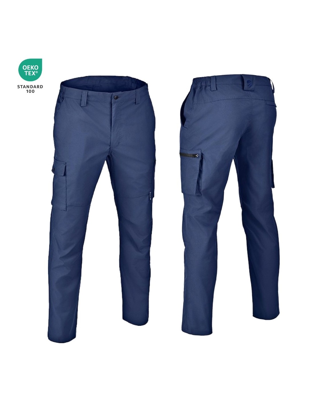 Pantalón workwear ligero marino100% poliéster elastómero 180g. Secado rápido, tacto suave, rodillas preformadas. 5 bolsillos funcionales. OEKO-TEX. XS-4XL.