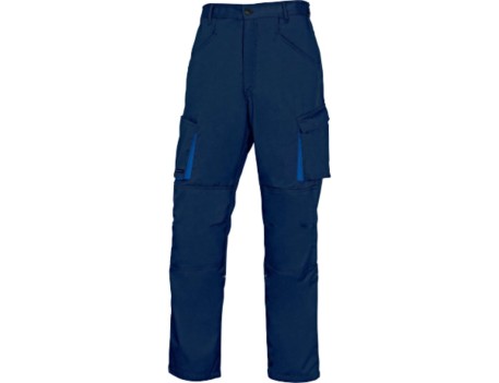 Pantalón DELTA PLUS MACH2 azul marino, tejido 245g/m², bolsillos funcionales, cierre cremallera y rodilleras integradas. Ideal para agricultura, reformas y transporte. Alta durabilidad y confort prolongado.