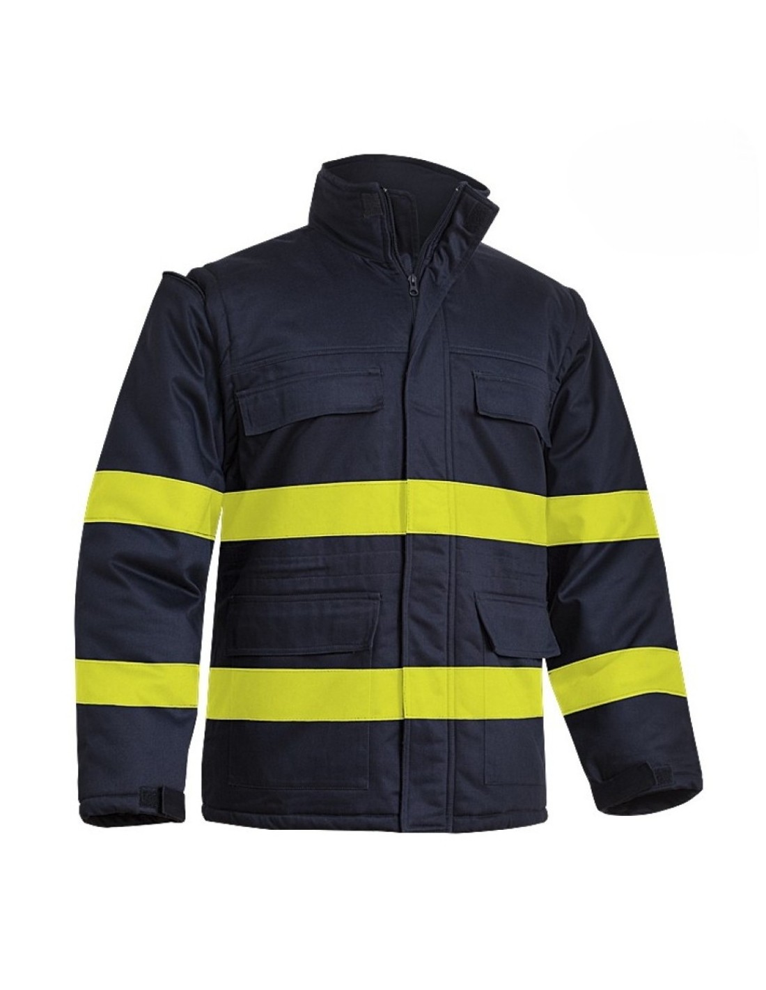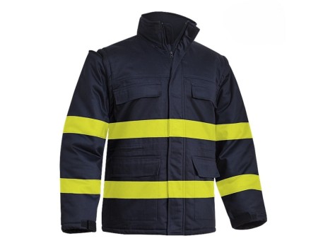 Parka Alta Visibilidad Ignífuga SARECO AV EPI Categoría III - Te protege del calor extremo y te hace visible con su construcción triple capa revolucionaria. Tejido exterior 99% algodón y 1% carbono resistente, napa intermedia con barrera térmica avanzada, más forro interior aislante transpirable para máximo confort.