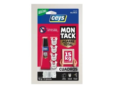 Adhesivo Montack Cuadros de Ceys, ideal para colgar cuadros y fotos sin clavos. Fuerte, rápido y fácil de usar, perfecto para cualquier superficie.