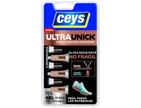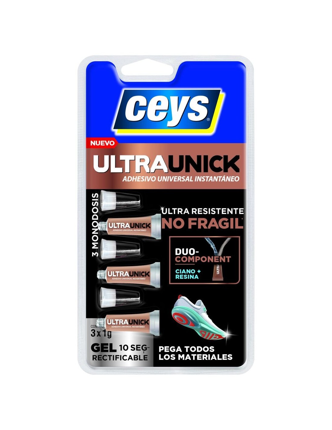 Ceys Superceys Unick, adhesivo multifuncional en 3 monodosis de 1g. Ideal para arreglos rápidos en el hogar. ¡Fácil y eficaz en cada uso!