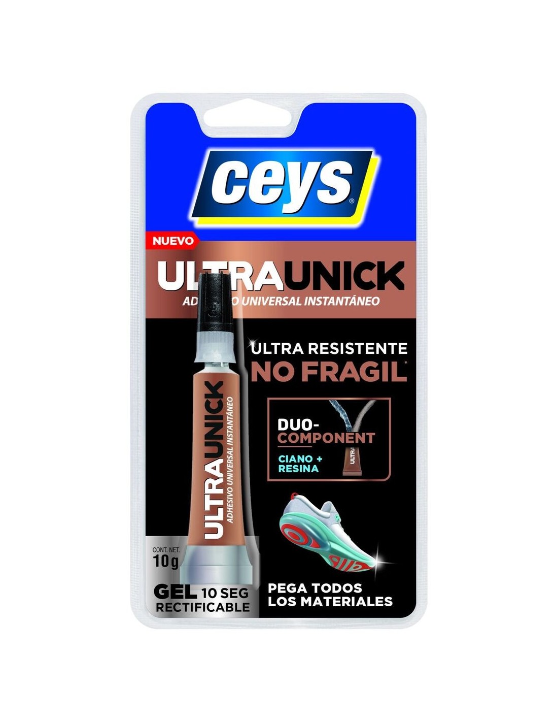 Adhesivo en gel CEYS Ultraunick 10g, ideal para reparaciones. Alta resistencia y precisión en aplicaciones, perfecto para uso doméstico y profesional.