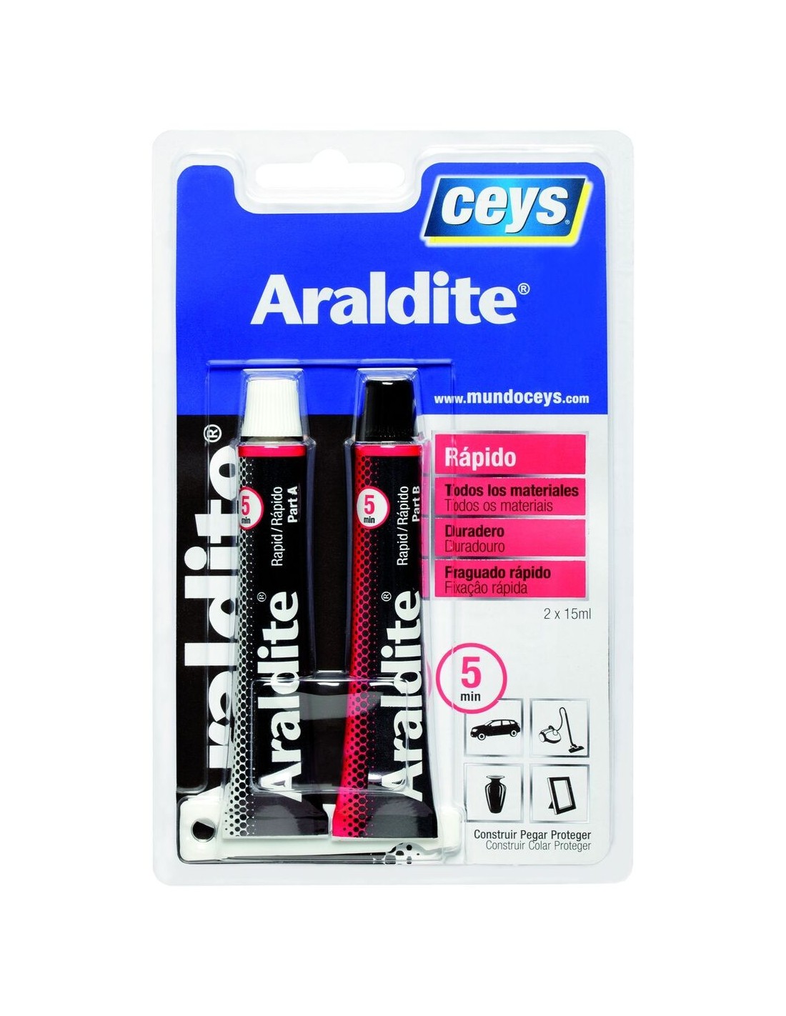Adhesivo Araldit Rápido Blanco de Ceys, ideal para unir materiales en segundos. Perfecto para reparaciones rápidas y precisas en el hogar.