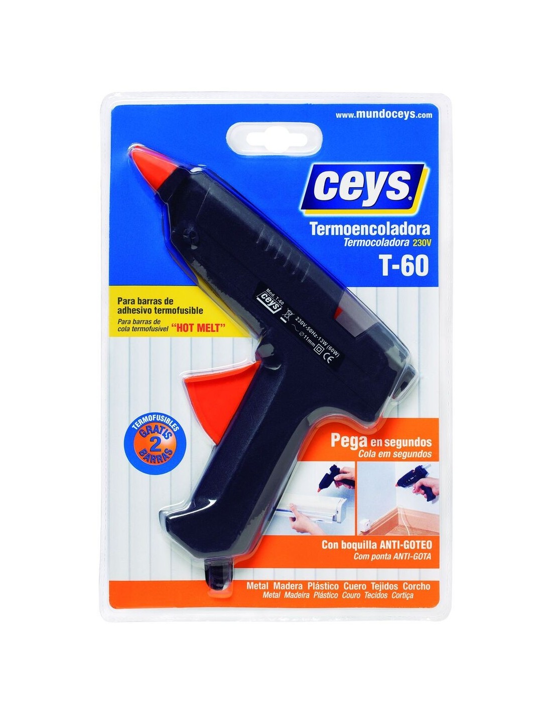 Pistola de termofusión CEYS T-60 de 60W. Ideal para trabajos de manualidades y reparaciones. Calienta rápido y proporciona uniones fuertes.