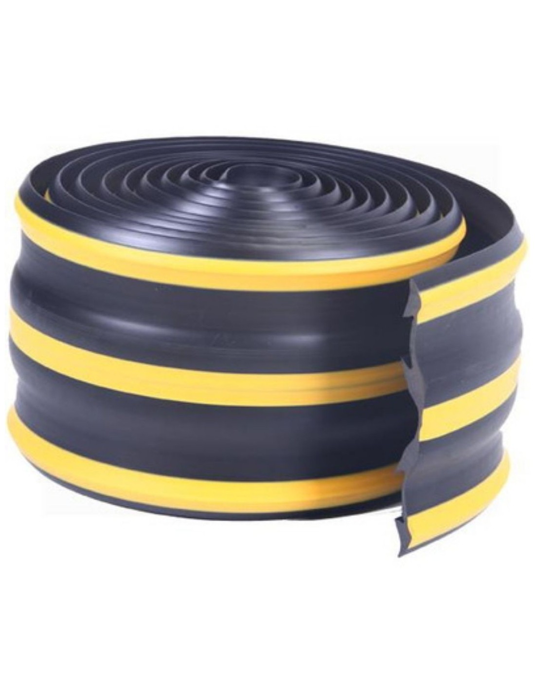 El protector para parking y muelles de carga está fabricado en resistente caucho reciclado de color negro con franjas amarillas para mayor visibilidad, ofreciendo la flexibilidad necesaria para absorber pequeños impactos; su fijación se realiza mediante tacos y tornillos (no incluidos) que deben anclarse firmemente a la pared, se presenta en cajas de 5000 mm aunque el instalador puede cortarlo para adaptarlo al espacio, tiene unas medidas de 5000x200x30 mm, un peso de 10 kg, está elaborado en goma reciclada, con presentación individual y embalaje en caja de 340x320x200 mm.