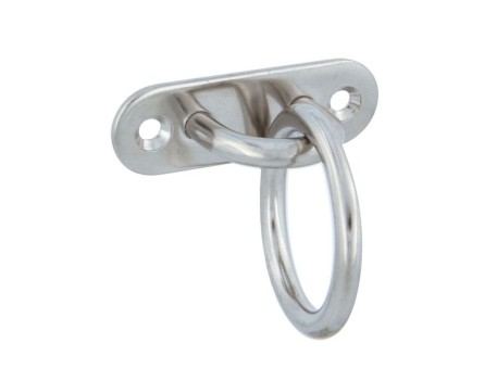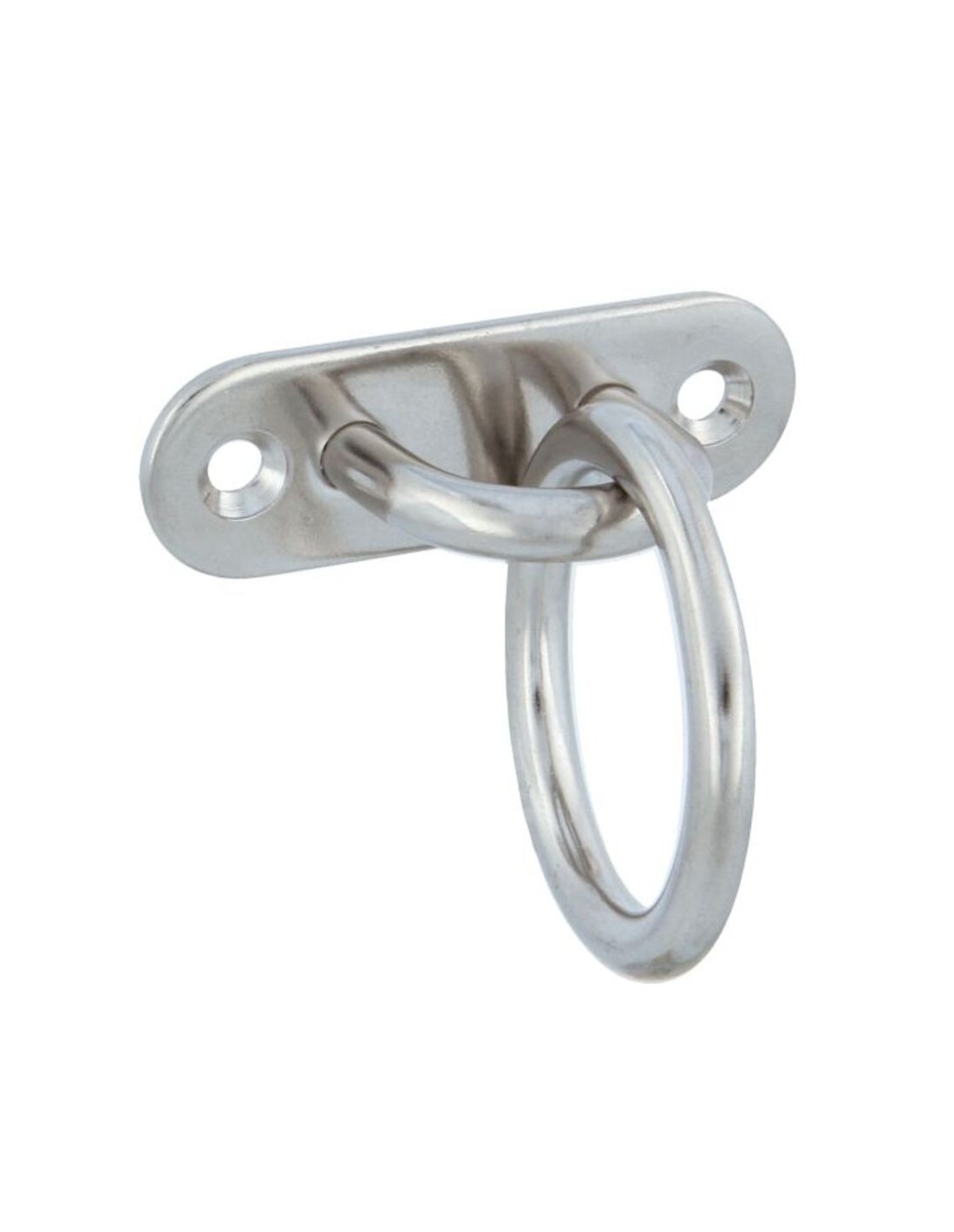 Placa de amarre con anilla de acero inoxidable AMIG. Ideal para aplicaciones de sujeción y anclaje en entornos exigentes. Alta resistencia y durabilidad.