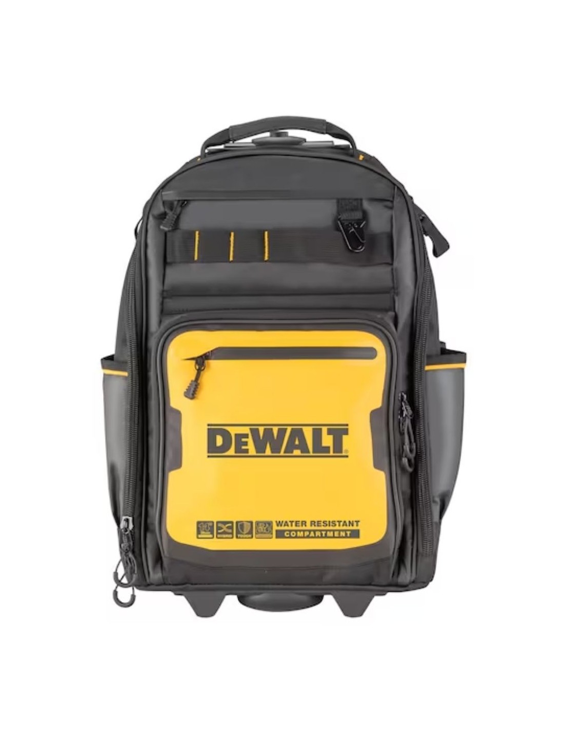 Protección para el ordenador portátil, evitando daños a los dispositivos electrónicos en los lugares de trabajo más duros gracias a un compartimento independiente para el portátil. Almacenamiento protegido para las hombreras, que se guardan en un bolsillo específico cuando no se utilizan. Almacenamiento de herramientas ampliado, con un bolsillo especial para botellas y una sección exclusiva para herramientas largas. Acceso cómodo a las herramientas mediante un bolsillo principal abatible para facilitar su uso rápido. Fácil manejabilidad para desplazarse con facilidad en el lugar de trabajo, gracias a duraderas ruedas y un asa telescópica. Cremallera de cierre rápido con tirador ergonómico en forma de U para guardar y extraer herramientas rápidamente, incluso con guantes. Diseñado para la comodidad, con un sistema de soporte de espalda ergonómico y acolchado que facilita el transporte. Además, almacenamiento adicional que permite encontrar lo esencial rápidamente mediante un clip de cinta dedicado y un mosquetón metálico.