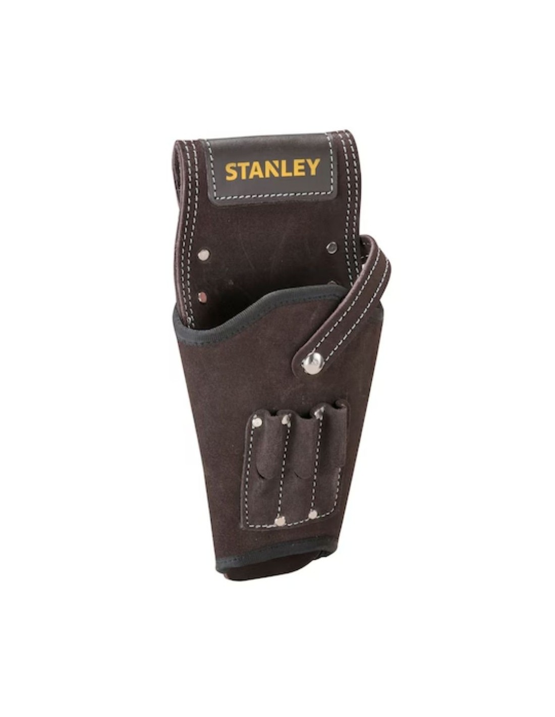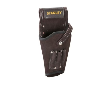 Fabricada en piel de búfalo, flexible y duradera, adecuada tanto para usuarios diestros como zurdos, con una tira de piel que sostiene el taladro de forma segura en su lugar.