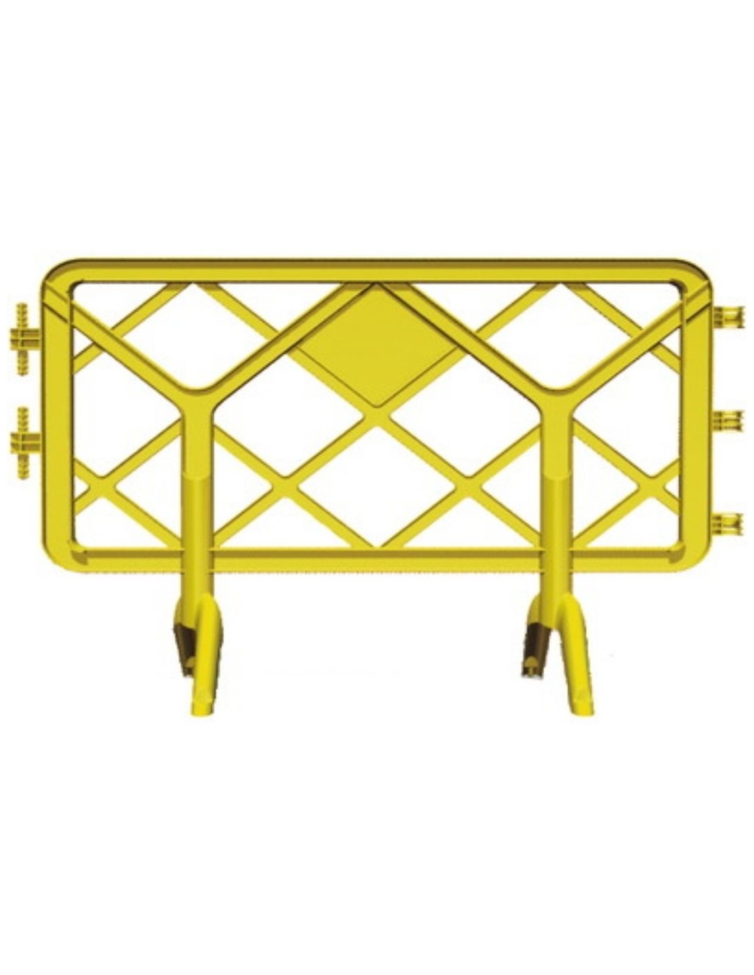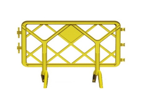 Valla de polipropileno virgen de 1,3 m de largo y 1 m de altura con pies de plástico, fabricada en material reciclable, de gran rigidez y color estándar amarillo.