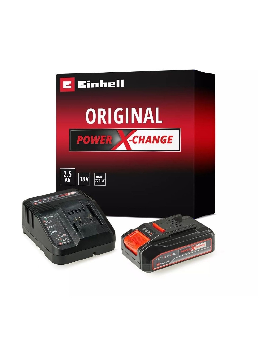 Kit Einhell Power X-Change con cargador rápido y batería 18V 2.5Ah universal y duradera.